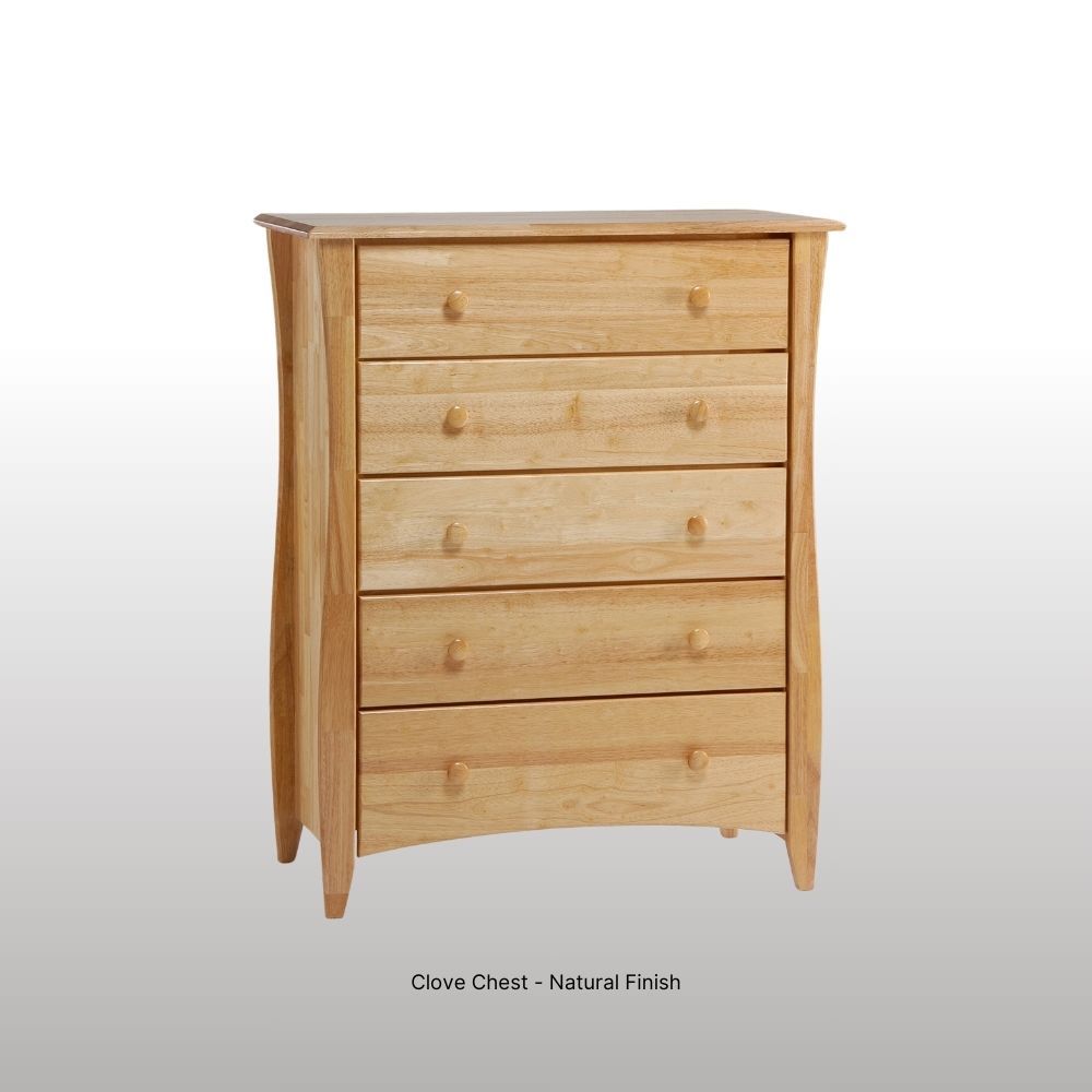 Sold as a floor model and only one item is available at this price. Our Clove 5 Drawer Chest by night and day furniture pleases with its stately look, and gives you fabulous storage while taking up minimal floor space. The long curves of its tall legs may be its finest feature. The curvy edges and outstanding finish of our Clove Cases help create a soothing environment while keeping your things neatly organized.